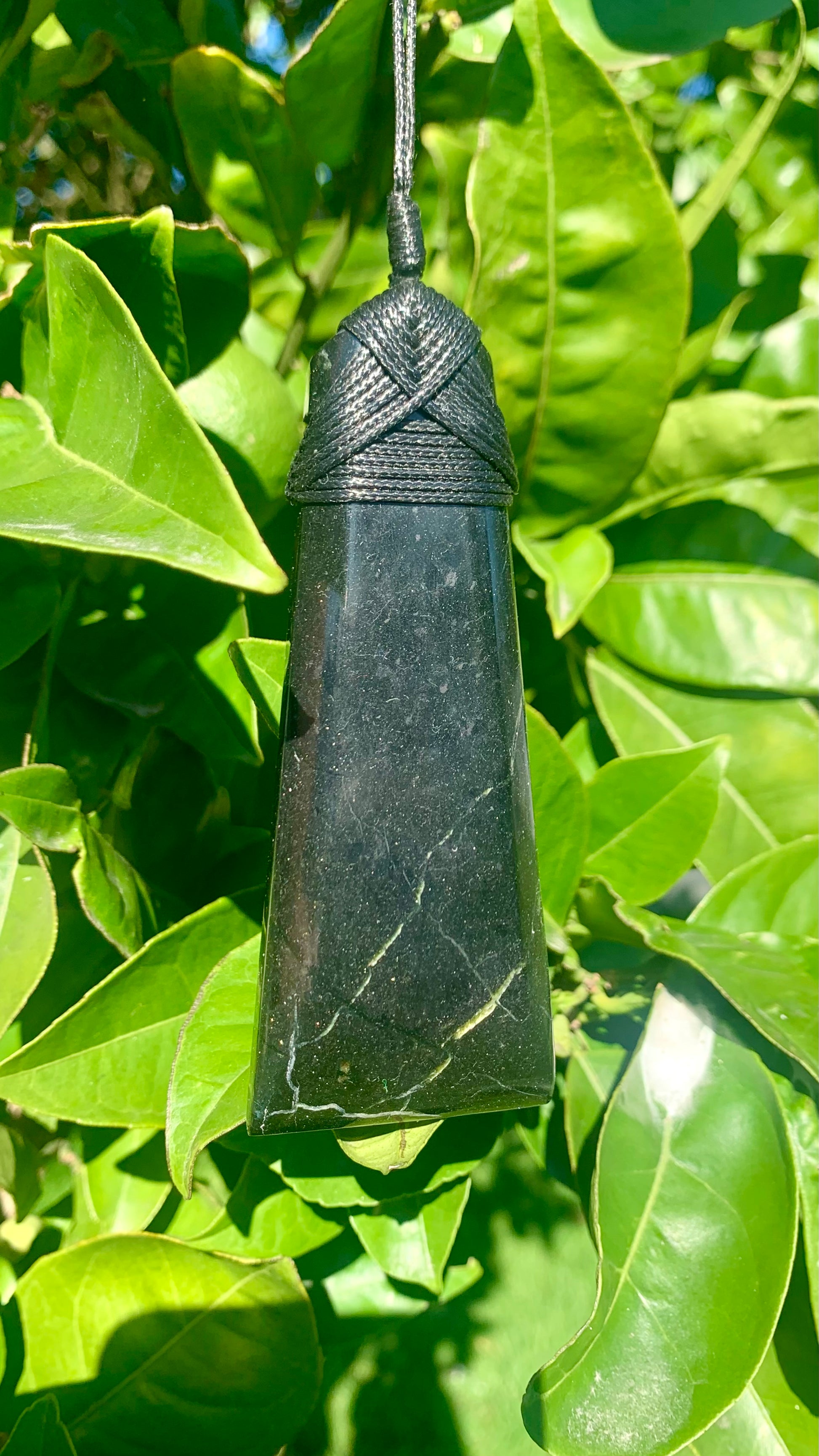 Experience the natural beauty of New Zealand with our XL Toki necklace. Made with genuine black Pounamu, this elegant piece measures 10cm by 4.0cm. Perfect for any occasion, this necklace is a must-have for lovers of nature and exquisite jewelry.